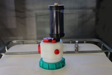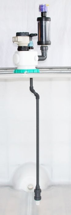![]() IBC-1000l Schraubdeckel DN150 grün, mit Tri Clamp Anschluss d 3mm, Sauglanze mit Rückschlagventil |