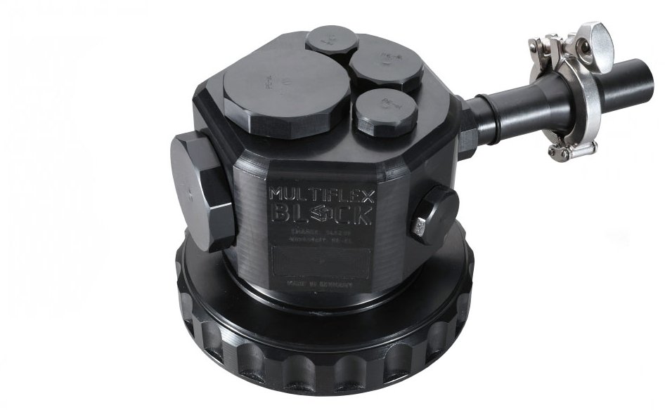 MULTI FLEX BLOCK - Elektrisch leitfähige Ausführung- Anschluss Schlauchtülle PE-elektrisch leitfähig 2 Zoll - Anschluss Milchrohrgewinde PE-elektrisch leitfähig 1 1/4 Zoll - Blindstopfen PE-elektrisch leitfähig - Schraubkappe PE-elektrisch leitfähig |