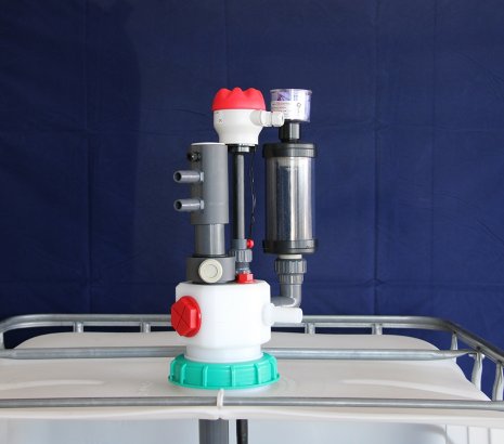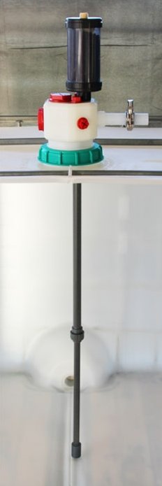 ![]() IBC-1000l Schraubdeckel DN150 grün, mit Tri Clamp Anschluss d 3mm, Sauglanze mit Rückschlagventil |